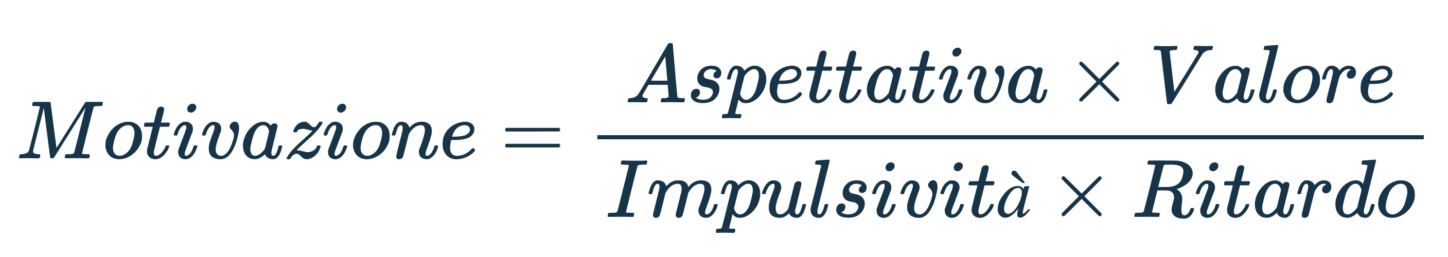 I fattori a numeratore (Aspettativa e Valore) aumentano la motivazione, mentre i fattori e denominatore (Impulsività e Ritardo) la diminuiscono. Il ritardo è, appunto, a denominatore.