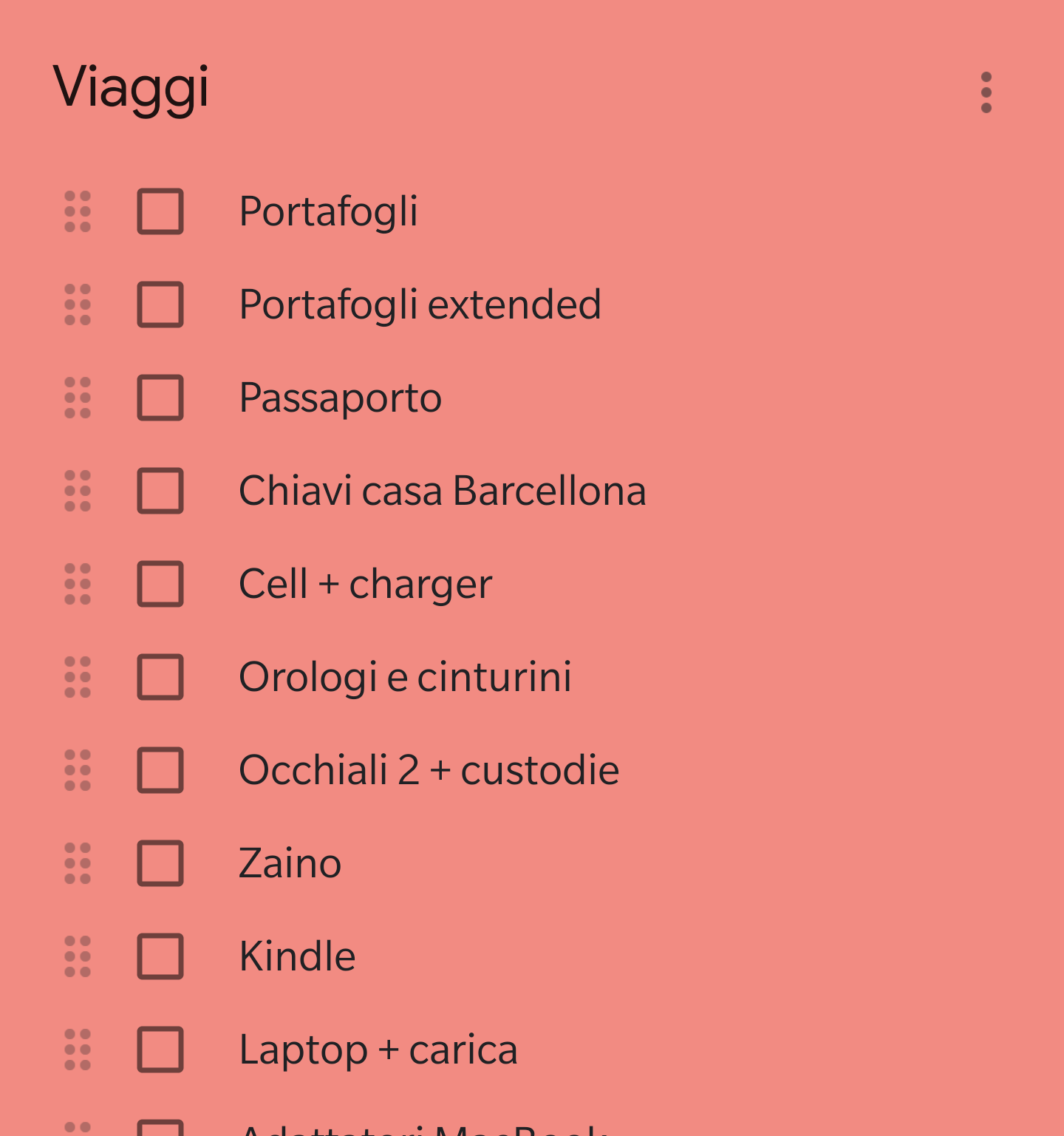 Nell’era pre-corona, per esempio, viaggiavo piuttosto spesso. In ognuna di quelle occasioni mi affidavo a una o più delle checklist costruite nel tempo, in modo da ridurre la possibilità di dimenticare qualcosa.